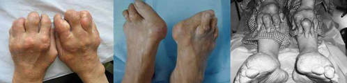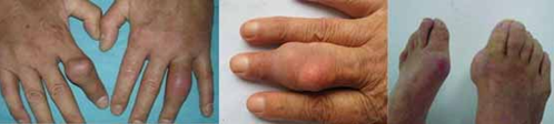 症状表现:结石体积增大 关节畸形 功能障碍 残疾